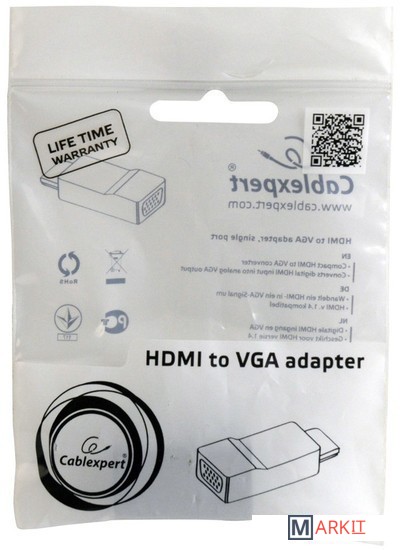 Markit » Кабели, адаптеры, разветвители » Адаптер Cablexpert A-HDMI-VGA-001