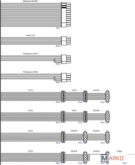 Модульное подключение кабелей питания | ✘ |