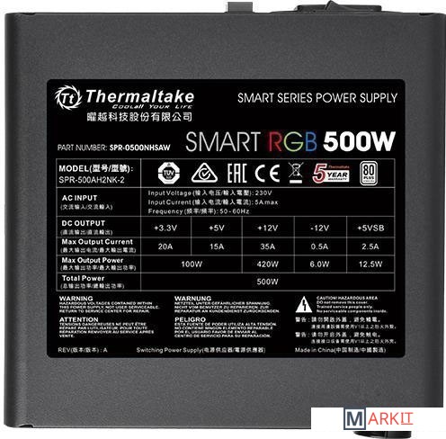 Markit » Блоки питания » Блок питания Thermaltake Smart RGB 500W SPR-500AH2NK-2