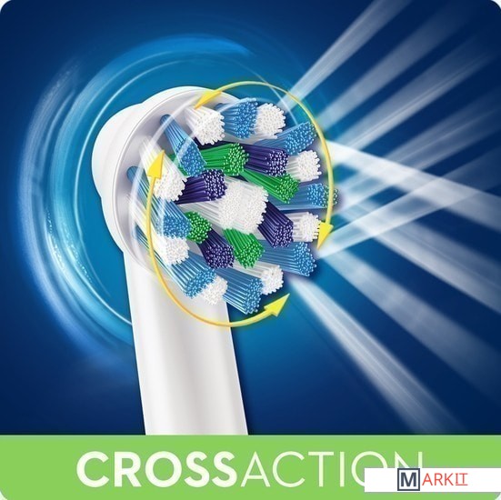 Насадка Cross Action для электрических зубных щеток предназначена для чистки межзубных промежутков и охватывает большую поверхность зубов по сравнению с обыкновенной зубной щеткой.Щетинки, расположенные под определенным углом, обеспечивают превосходную чистку полости рта.Разная длина щетинок позволяет добраться до труднодоступных участков и удалить больше зубного налета, чем при использовании обыкновенной зубной щетки.