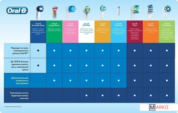 | Совместимые модели | Подходит ко всем электрическим зубным щеткам Oral-B, кроме звуковых электрических зубных щеток Oral-B Sonic/Pulsonic. / Подходит ко всем электрическим зубным щеткам Oral-B, кроме звуковых электрических зубных щеток Oral-B Sonic/Pulsonic, а также Oral-B iO Series. |