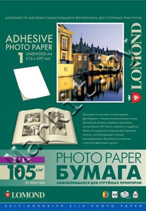 (СНЯТО С ПРОИЗВОДСТВА) Шелковисто-матовая самоклеящаяся фотобумага, A4, 1 шт. (210 x 297 мм), 105 г/м2, 25 листов. (2310003) Код: 3575