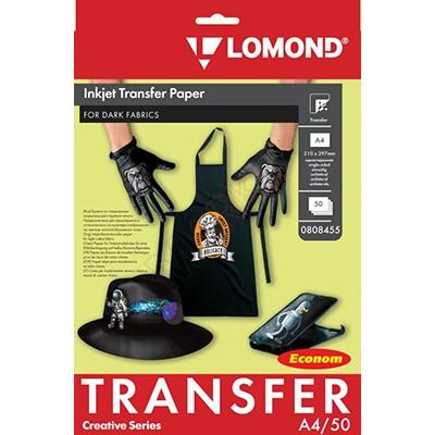 Термотрансферная бумага LOMOND серия TRANSFER PAPER ECONOM, A4, 140 г/м2, ДЛЯ ТЕМНЫХ ТКАНЕЙ (DARK CLOTH), 50 листов, односторонняя, для струйной печати (0808455) Код: 743